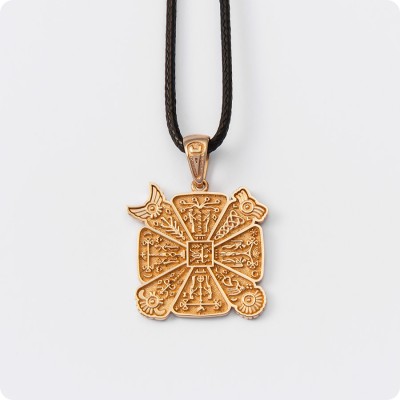 Оберег Славянский Крес из Золота подойдет для мужчин и женщин, размер медальона вы можете выбрать самостоятельно из представленных вариантов. Такой амулет рекомендуется сочетать с золотой цепью или кожаным шнурком с золотыми вставками.