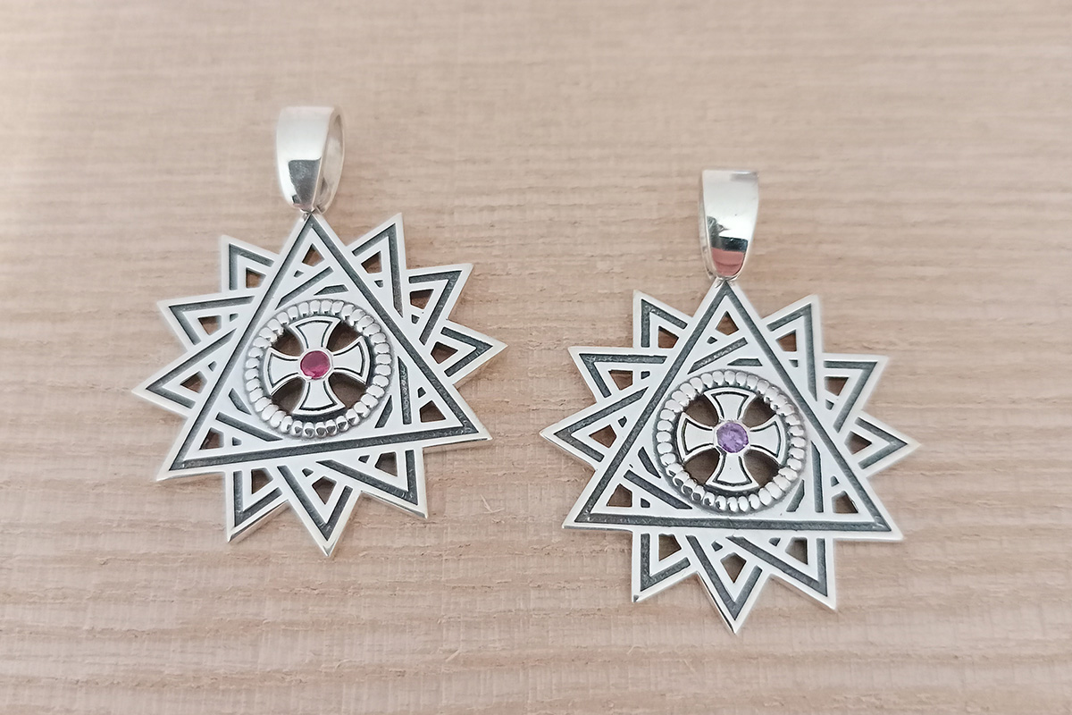 Алатырь с Солнцем (серебро с золотом), 30 мм