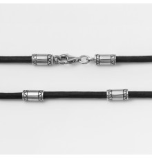 Кожаный шнур со вставками из серебра