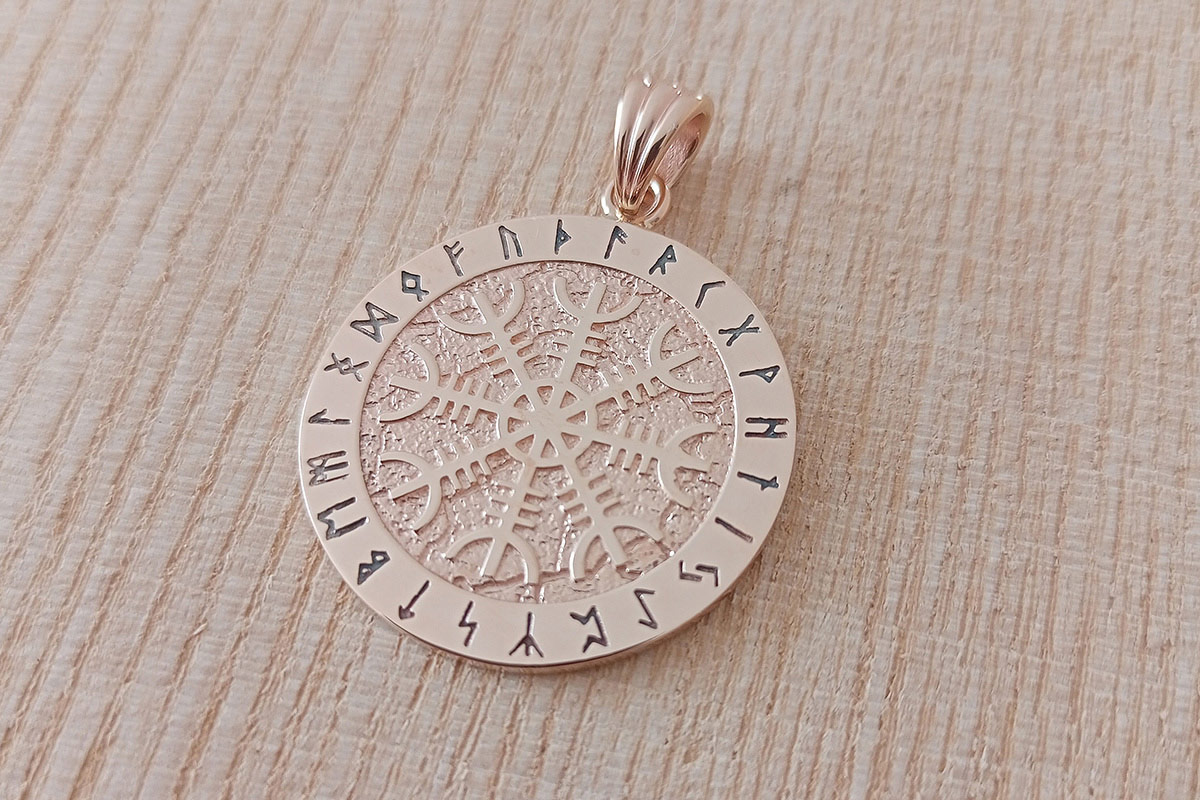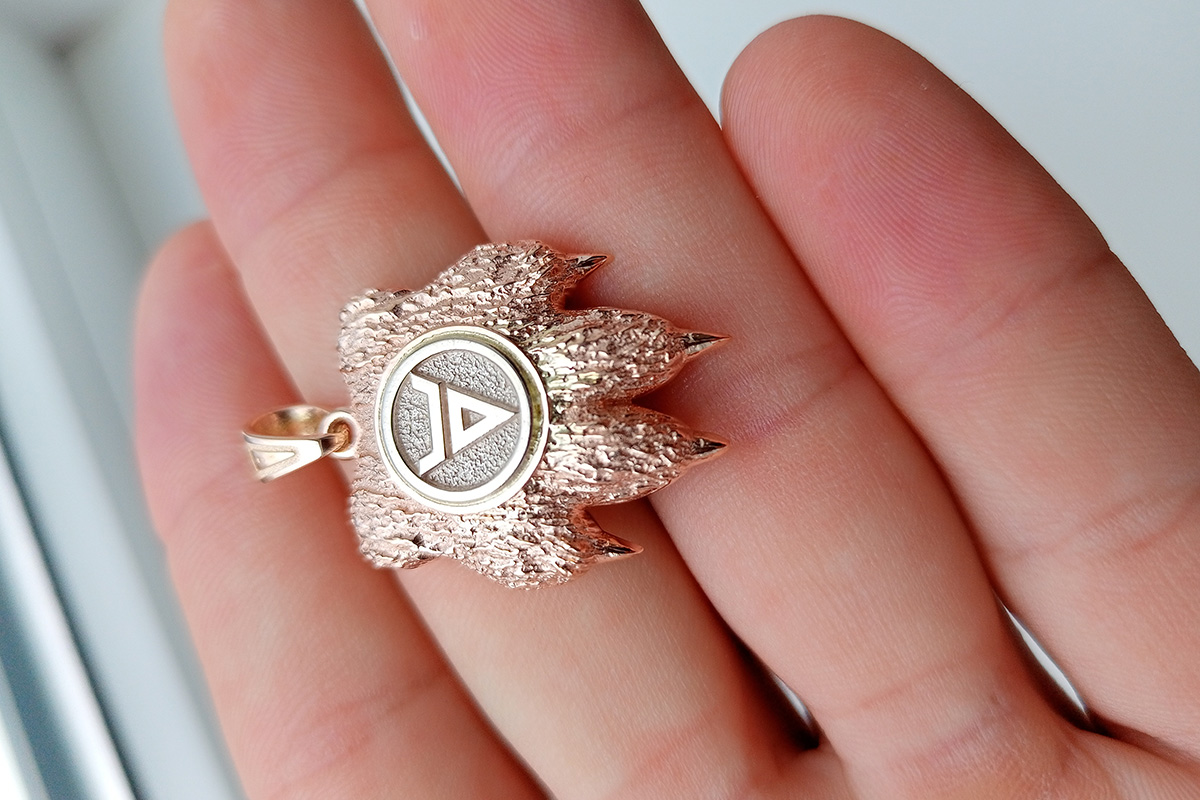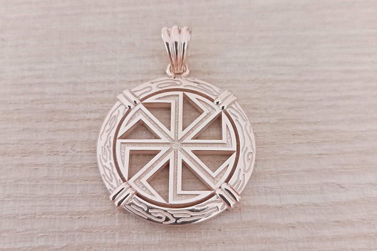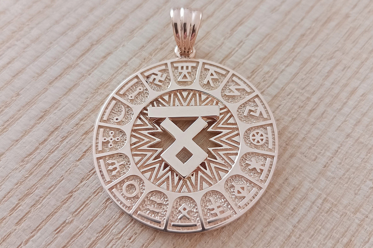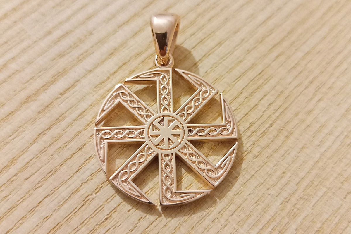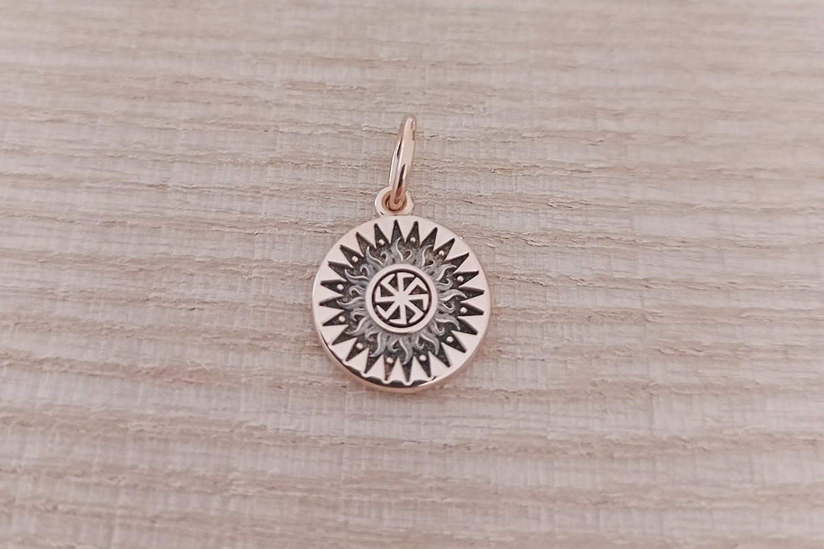 Двухсторонний оберег Алатырь-Коловрат с Солнцем из золота